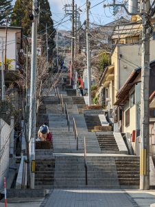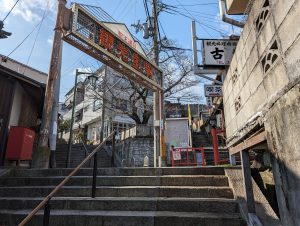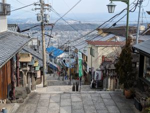 Der Ikoma liegt in der Mitte zwischen Nara und Osaka und während der Wanderung kann man einen relativ guten Blick auf beide Städte. Gestartet bin ich ganz bequem vom Bahnhof Ikoma aus. Hier geht die Osaka Metro Chuo Line in die Kintetsu über. Der Anfang führt durch städtisches Gebiert mit einigen Hotels und sehr, sehr vielen Treppen. Auch später wird ein Großteil der Strecke über Treppen erklommen. Wer dazu keine Lust hat kann den Aufstieg mit einer Seilbahn abkürzen. Nach etwa der Hälfte Fußweg kommt man ein einer Buddhistischen Tempelanlage, Houzan-ji (宝山寺), vorbei. Trotz des Feiertages war vormittags relativ wenig Betrieb. Ye weiter man den Berg heraufkommt, desto leerer wird es. Auf dem Gipfel befindet sich ein kleiner Vergnügungspark, der sich jedoch momentan in der Winterpause befindet und an dem Renovierungsarbeiten vorgenommen werden.